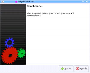 Riavviamo PlayOnLinux andiamo di nuovo sul menù Plugins per vedere questa volta la voce del plugin abilitato; clicchiamoci sopra per avviare, nello specifico, i benchmark.